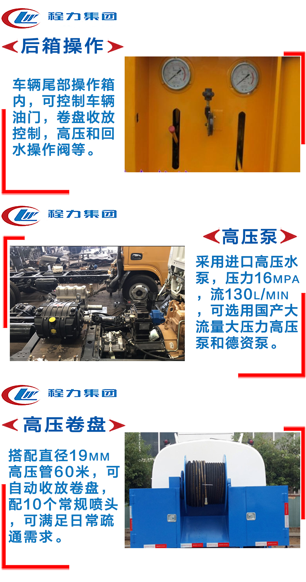 | 其他 | 隨底盤選裝駕駛室。該車通過取力器帶動高壓泵工作,高壓泵將普通的水轉化為高壓低流速的水,然后輸送到高壓管路,使其以一定的能量到達高壓噴嘴進行清洗工作.罐體有效容積8.19立方米,罐體外形尺寸(長度×長軸×短軸)(mm):3800(罐體實際總長5000,其中1200用于安裝附件類)×2200×1380.介質名稱:水,介質密度:1000千克/立方米.可選裝前噴水裝置,不裝前噴水裝置時整車長為:8050mm。選裝前部噴水裝置時,整車長度為(mm):9000,前伸為(mm):950,整車長/軸距/后懸對應關系為(mm):8050/5000/1620,8050/4700/1920,8050/4500/2120,8050/4200/2420,8050/3800/2820,側防和后防護材料為Q235A碳鋼,采用焊接連接方式。后防護與車駕焊接連接,后防護斷面尺寸150×60mm,離地高度520mm。僅選用9.00R20(16PR),10.00-20(16/18PR),10.00R20(14/16/18PR),10R22.5(16PR),275/80R22.5,275/70R22.5(16/18PR),295/80R22.5規格輪胎。ABS型號:3631010-C2000,4460046440;生產廠家:東科克諾爾商用車制動系統(十堰)有限公司,威伯科汽車控制系統(中國)有限公司。 | ||