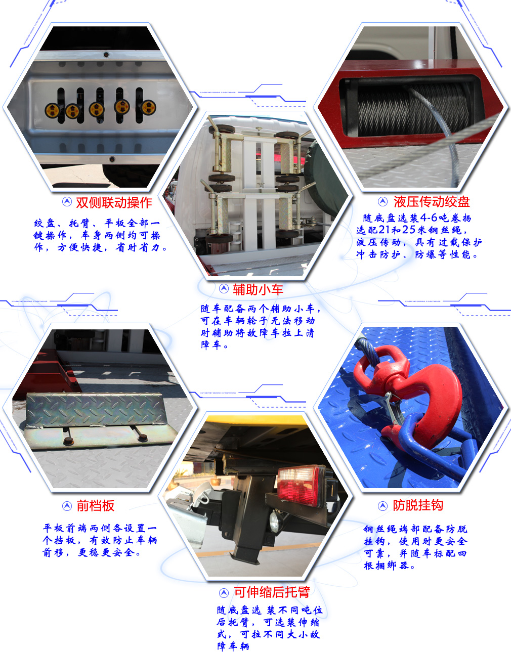 | 其他 | 托舉質量665kg.防護材料:Q235A碳鋼,連接方式:左右側面防護裝置與大梁螺栓連接; 后下部防護與車架采用焊接連接,后部防護斷面尺寸(mm):100×50,后部防護離地高度(mm):450.ABS及其控制器型號為:APG3550500A4,生產廠家為:浙江亞太機電股份有限公司. | ||