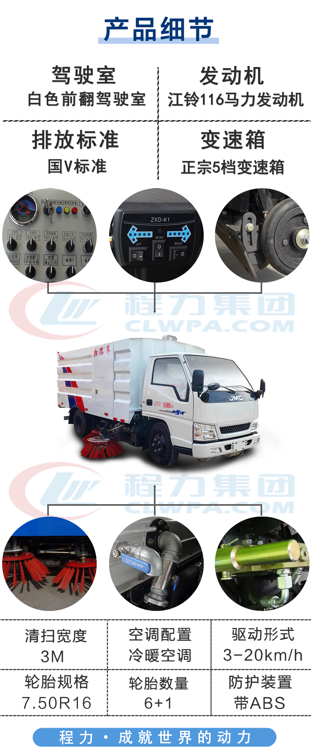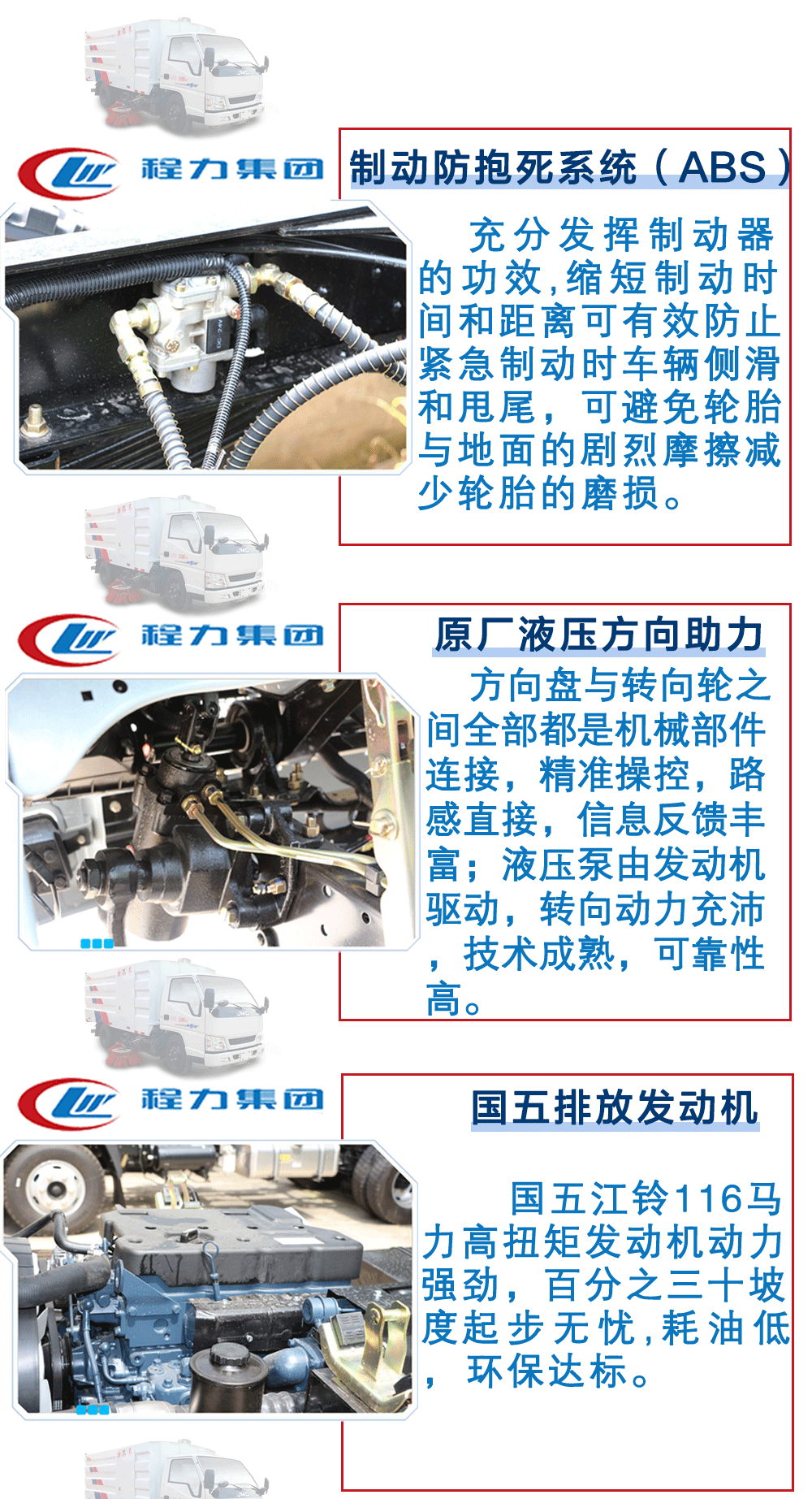 | 其他 | 隨底盤選裝駕駛室,選裝吸盤中置和單掃刷及無掃刷結(jié)構(gòu),選裝后部結(jié)構(gòu);選裝箱體外觀.ABS系統(tǒng)型號:APG3550500A,ABS系統(tǒng)生產(chǎn)廠家:浙江亞太機(jī)電股份有限公司;側(cè)防護(hù)采用專用裝置代替;后下部防護(hù)裝置材質(zhì)為Q235A,焊接連接,下邊緣離地高450mm,截面高度尺寸120mm, 截面寬度尺寸50mm。 | ||
