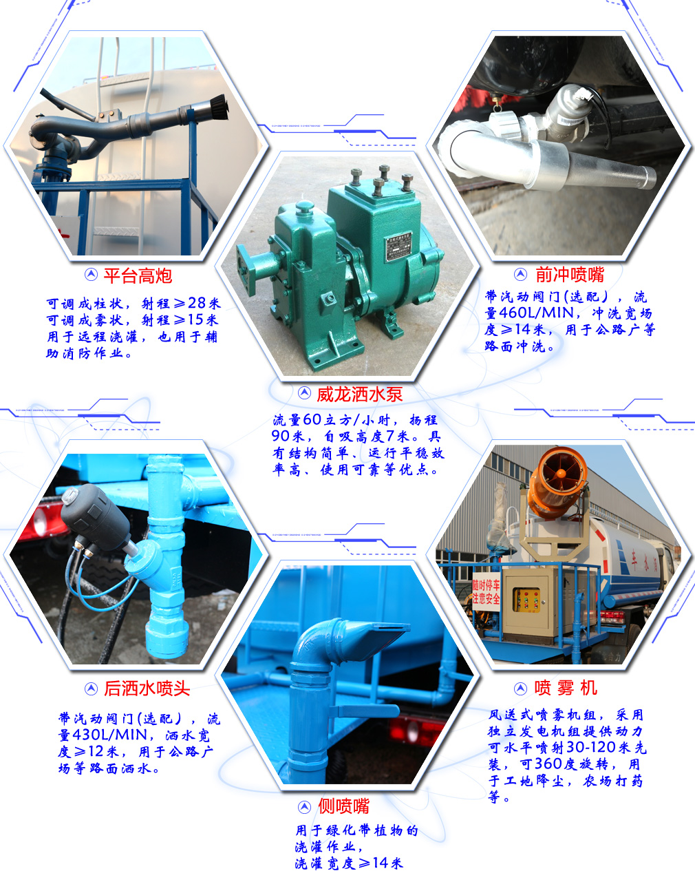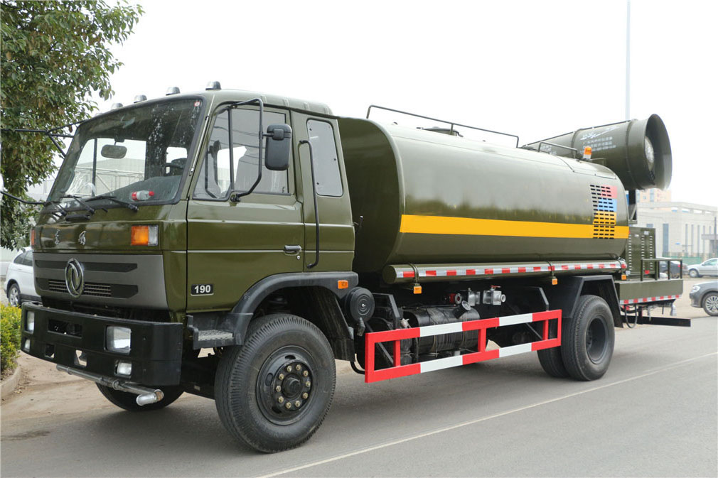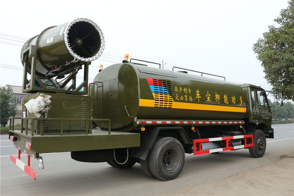 其他 1、罐体有效容积:9.77立方米,介质:水,密度:1000千克/立方米,当轴距(mm)为3950时,罐体尺寸(mm)为4000×2300×1500,当轴距(mm)为4500或4700时,罐体尺寸(mm)为4500×2200×1400;2、车辆长/轴距/前悬/后悬对应关系为(mm):7750/3950/1450/2350,8300/4500/1450/2350,8500/4700/1450/2350,7750/3950/1250/2550,8300/4500/1250/2550,8500/4700/1250/2550;3、侧防护及后下部防护装置均采用Q235A材质,均采用焊接连接,后下部防护尺寸(mm):50×150,离地面高度(mm)530;4、ABS型号为3631010-C2000,生产厂家为东科克诺尔商用车制动系统(十堰)有限公司;5、随底盘选装驾驶室;6、文字喷涂位置、车辆颜色及局部细节可变化。专用装置:抑尘雾炮 , 型号:LM-40 厂家:湖北龙马汽车装备有限公司。